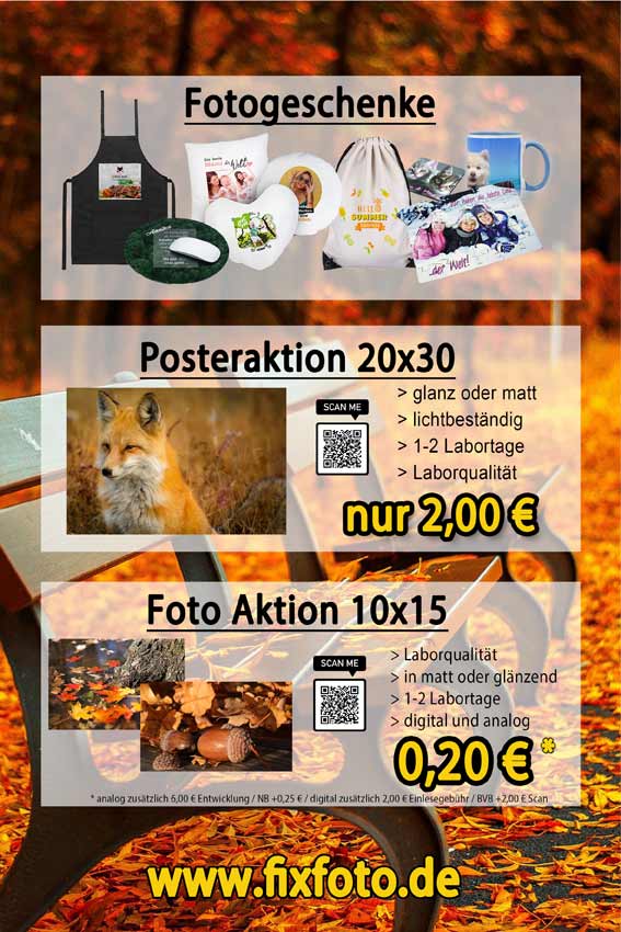 Sie erhalten neben Fotos im Direktdruck auch eine große und geschmackvolle Auswahl an Rahmen, Fotoalben und Fotozubehör. Natürlich produziert unser hauseigenes Fotolabor auch alle Arten von fotografischen Erzeugnissen, wie Poster, Leinwände, Entwicklungen und Fotogeschenke.